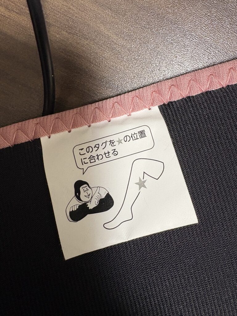 このタグがあるところをふくらはぎのつけねに当てて巻くんですけど(わかりやすくていい〜〜!)