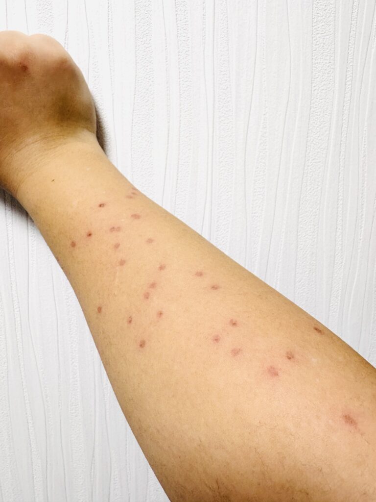 (1回目の時は上の腕の状態みたいに、顔全体に赤いポツポツがぶわーっと出ました。)