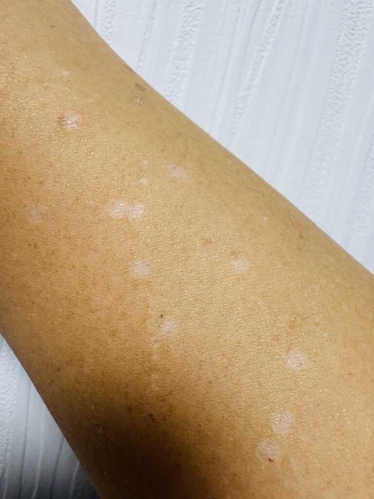 腕はどうか、夏までにこの白いポツポツ跡がマシになってくれたらいいな~~と思います……!