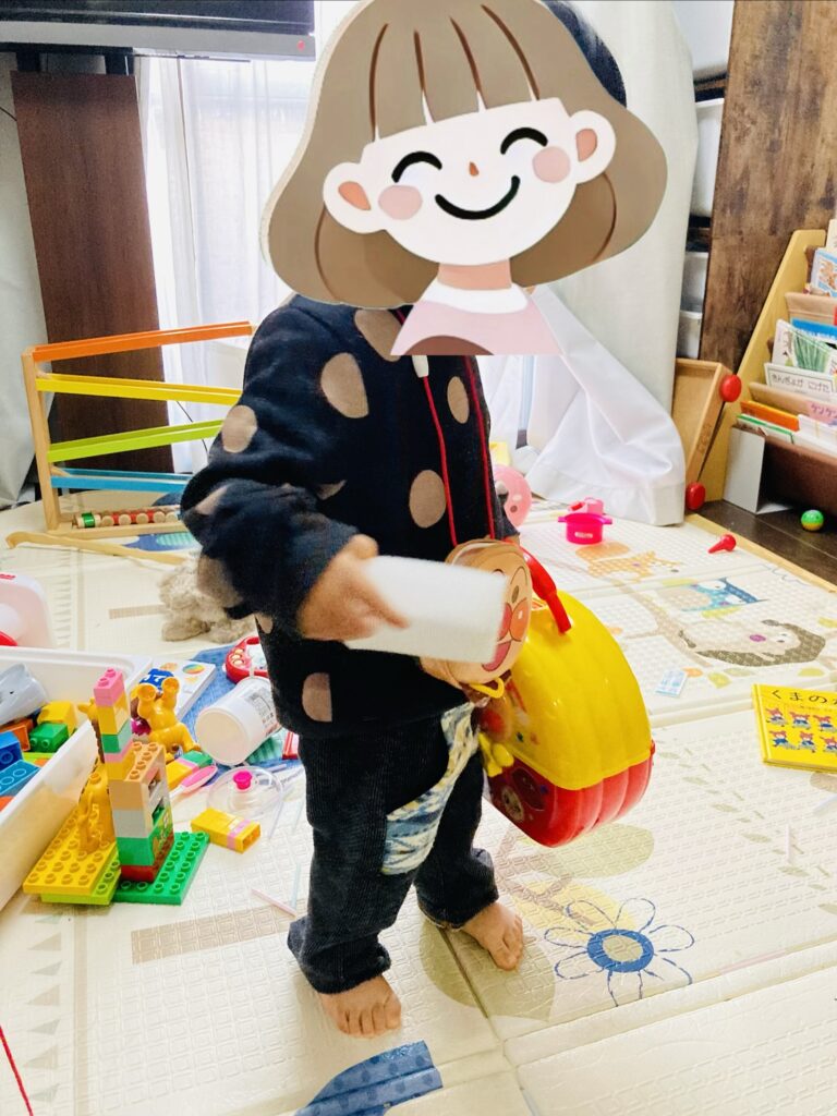 とこんこんと言ってみると「ワカッタ」と言いあっさりおもちゃを棚に戻し。