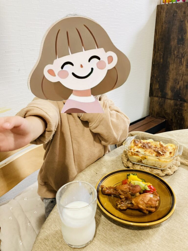 肉肉じゃんって感じですが、娘は牛乳が嫌いなせいか、あんまりミルク感が強いと食べてくれないようなんですよね……(こないだタラのクリーム煮を出してようやく気付いた)