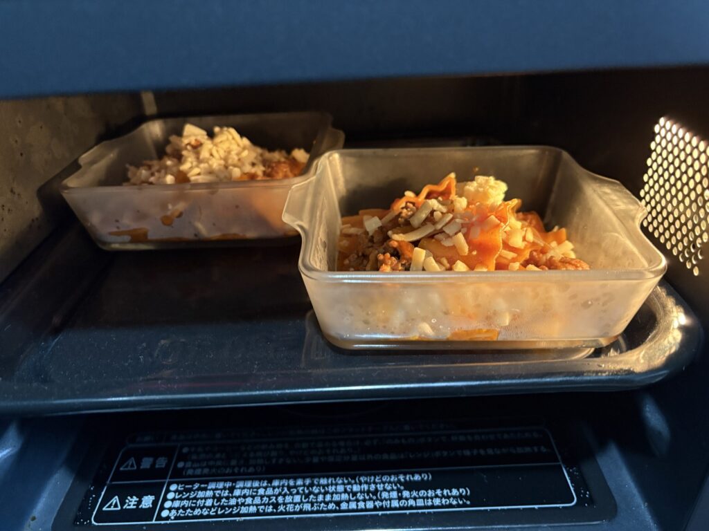 お皿に入れて、うちはトースターはないのでオーブンで、5分。