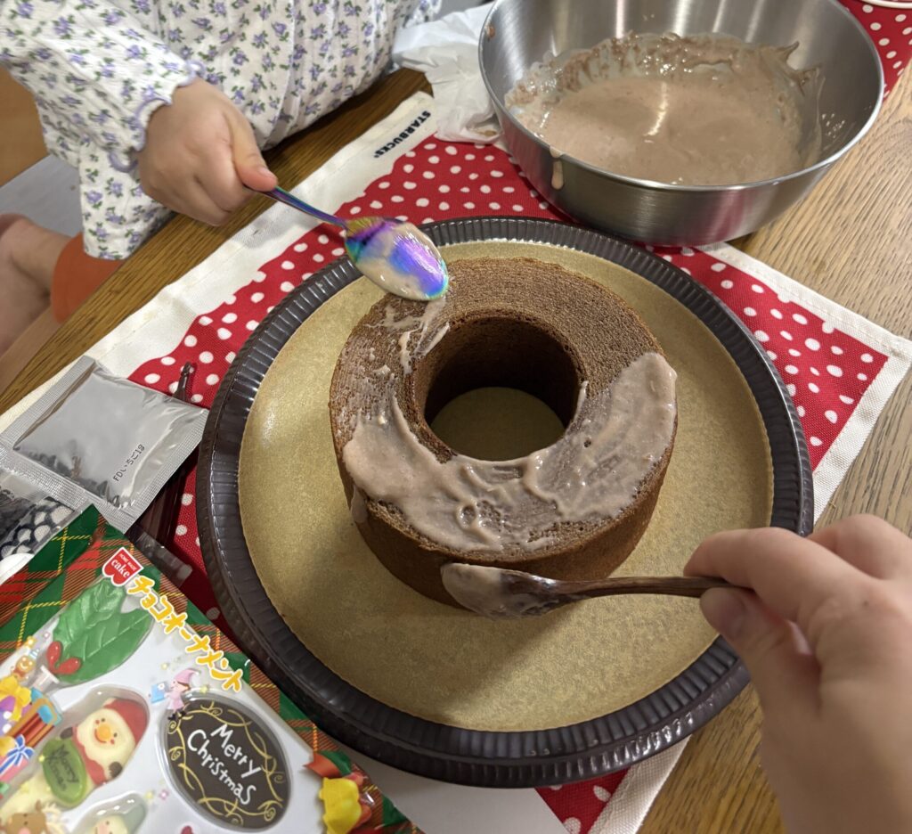 さすがに約2歳半ともなれば、大体のことが出来るな……。チョコケーキも買っておる……!